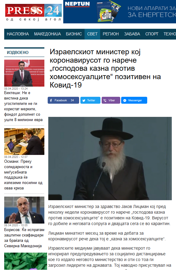 Линк до оригинален напис: https://press24.mk/izraelskiot-minister-koj-koronavirusot-go-nareche-gospodova-kazna-protiv-homoseksualcite-pozitiven